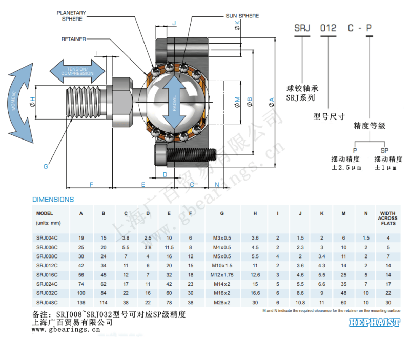 上海廣百貿(mào)易有限公司主要銷售:日本HEPHAIST球鉸軸承 HEPHAIST球面滾動接頭軸承 HEPHAIST萬向球進口軸承 HEPHAIST軸承代理商。